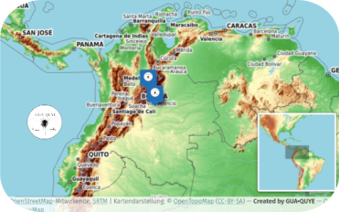 At GUA·QUYE Agroforestal, we are aware that everything is connected. Therefore, we work on the tropical high-lands of Colombia to beneficiate the entire planet!"